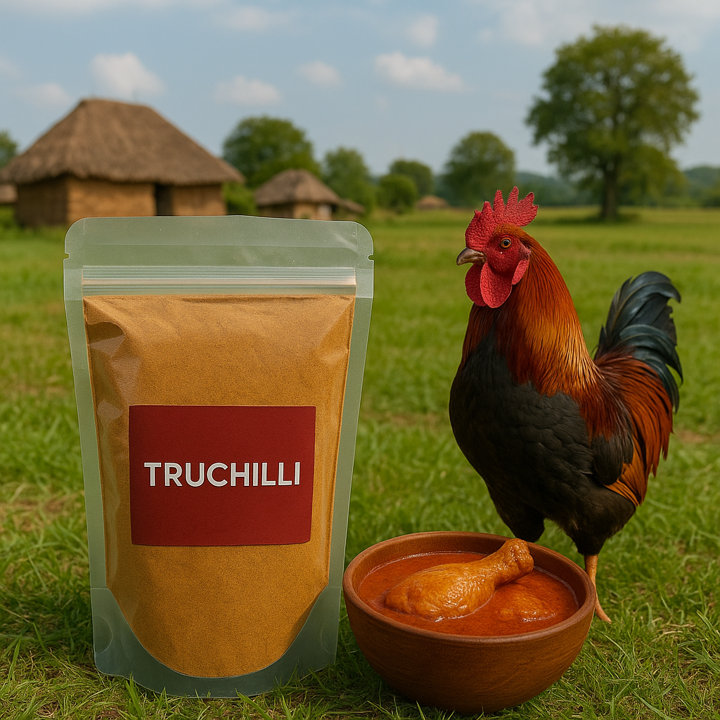 At Truchilli, every blend is crafted with honesty and love. Our Chicken Masala is a soulful mix of handpicked spices like coriander, cumin, pepper, red chillies, and aromatic herbs — bringing out the authentic taste of traditional Indian chicken dishes.